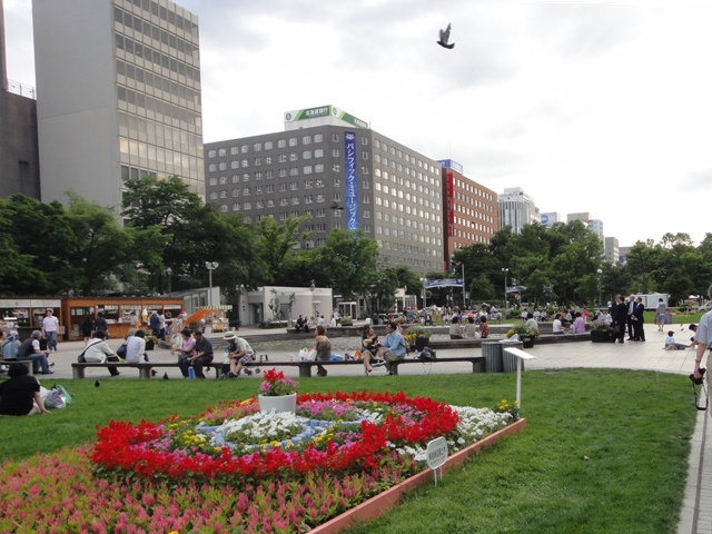 大通公園では家族連れがお弁当広げて一休み