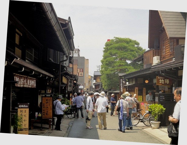 賑やかにおしゃべりしながら高山見物