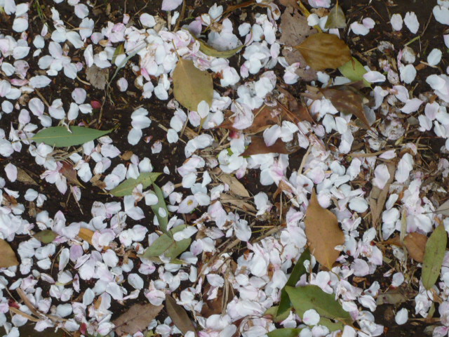 下に見えてる白い点々は、みんな落ちた花びら