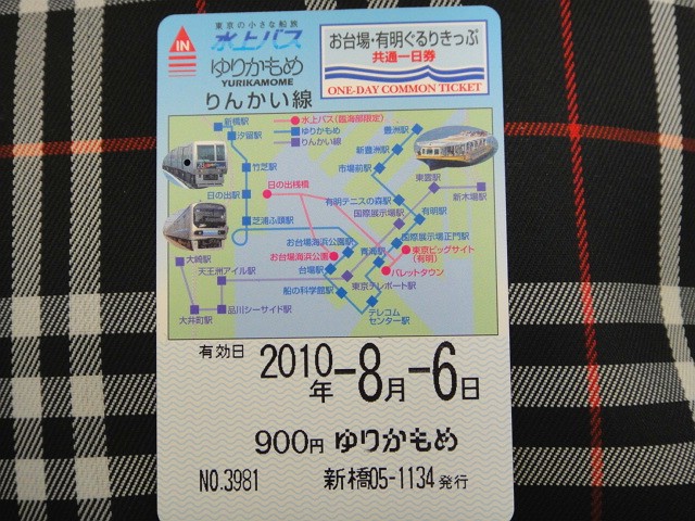 水上バス、ゆりかもめ、りんかい線共通一日券「お台場・有明ぐるりきっぷ」¥900