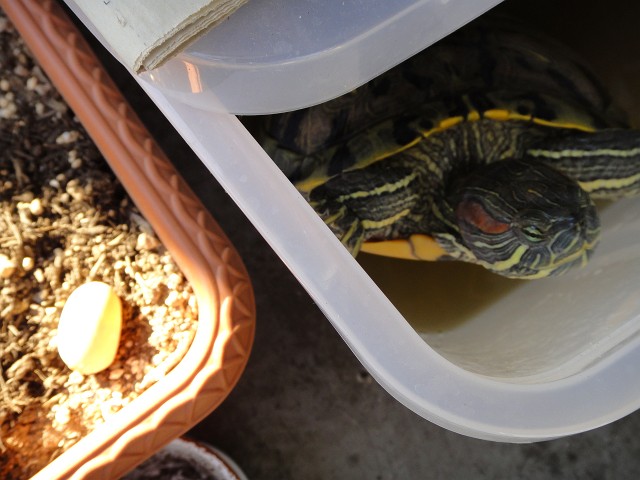 冬はもっと狭いケースで部屋の中で半分冬眠?