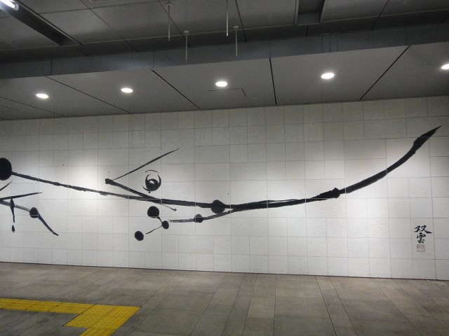 明治神宮駅で千代田線から副都心線に乗り換えると、まず目に入ってくるのが、副都心線の池袋-渋谷間の8駅に設置されたパフリックアート14点の内の一つ、書道家・武田双雲さんが書き下ろした書「希望」