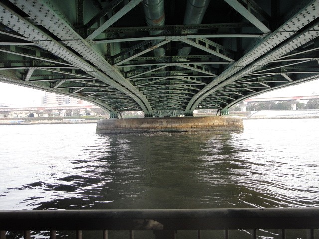 船の行き交う言問橋の下をくぐって・・・