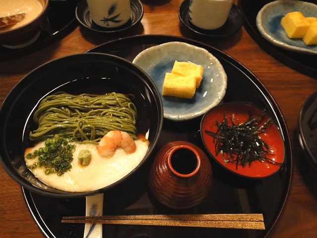 私は冷たい茶蕎麦のむぎとろそばセット次女の麦ご飯を一口