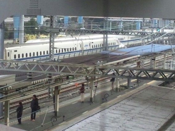 え~っとこの時間で検索すると‥700系名古屋行きこだまと、N700系東京行きのぞみのすれ違い‥かな?